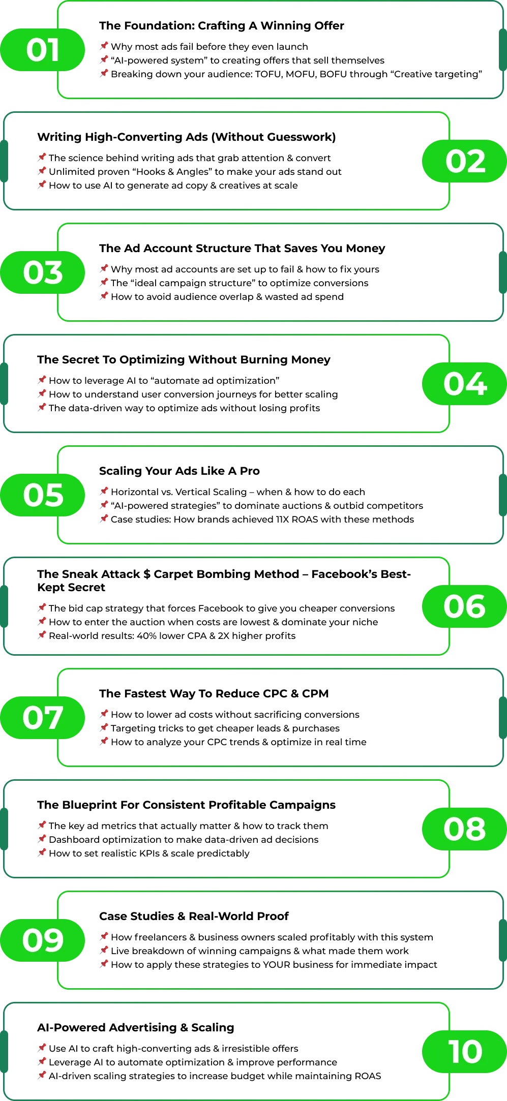But here’s the thing—I don’t want you to spend years figuring this out like I did. That’s why I created my 3-hour advanced Facebook Ads workshop—to cut through the confusion and show you exactly what works, step by step. If you’re tired of ads not converting, feeling lost with the constant updates, or just don’t have the time to test endlessly—I’ll show you how to run high-ROI Facebook Ads without the frustration.